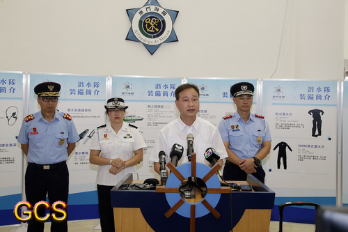 The Government’s effort on disaster prevention and mitigation – The Commissioner-General of the Unitary Police Service, Mr Ma Io Kun, speaks during a media tour on the emergency rescue equipment deployed by the public security forces.