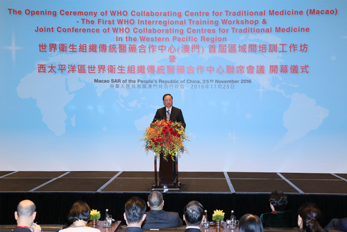 Com o intuito de implementar o desenvolvimento de medicina tradicional a nível internacional, construindo uma plataforma de colaboração e de intercâmbio na área de medicina tradicional, e em simultâneo coordenar com a execução das “Estratégias de Medicina Tradicional da Organização Mundial da Saúde 2014-2023, Macau recebeu, sexta-feira, 25 de Novembro a Conferência Conjunta do Centro de Cooperação de Medicina Tradicional da Organização Mundial da Saúde da Região do Pacifico-Ocidental A cerimónia contou com a presença do Chefe do Executivo, Dr. Chui Sai On, da Directora-geral da Organização Mundial da Saúde, Doutora Margaret Chan, do Vice-Director da Comissão Nacional de Saúde e Planeamento Familiar e Director da Administração Estatal de Medicina Tradicional Chinesa, Dr. Wang Guoqing. Estiveram também presentes na cerimónia o Vice-diretor do Gabinete de Ligação do Governo Popular Central na Região Administrativa Especial de Macau, Sr. Xue, Xiaofeng, o Comissário do Gabinete de Comissário do Ministério dos Negócios Estrangeiros na Região Administrativa Especial de Macau, Sr. Ye Dabo, o Director dos Serviços para a Alimentação e Saúde de Hong Kong, Dr. Ko Wing Man, o Secretário para os Assuntos Sociais e Cultura, Doutor Alexis Tam Chon Weng, o Director-Geral Adjunto da Organização Mundial de Saúde, Doutor Ren Minghui e o Director dos Serviços de Saúde, Dr. Lei Chin Ion. O Chefe do Executivo da RAEM, Dr. Chui Sai On, afirmou que o Governo pondera o desenvolvimento da medicina tradicional chinesa, em especial na atenção dada na gestão normalizada da medicina tradicional chinesa, na optimização do sistema de fiscalização de medicina tradicional chinesa e na melhoria do mecanismo de supervisão e gestão. Afirmou também que o Governo da RAEM irá colocar a industria da medicina tradicional chinesa como um dos principais elementos na promoção da diversificação da economia de Macau promovendo o ajustamento da estrutura industrial de Macau. O chefe do executivo, Dr. Chu Sai On, afirmou também que o Parque Cientifico e Industrial da Medicina Tradicional Chinesa construído por Macau na Ilha de Hengqing, província de Guangdong (Cantão) permite estabelecer a ponte com os países da língua portuguesa, impulsionando a industrialização e a internacionalização da medicina tradicional chinesa. O Governo da RAEM vai, ainda, de acordo com o plano estratégico “uma faixa, uma rota” prevista pelo Governo Central, reforçar a colaboração na área de medicina tradicional com os países que aderirem a este plano, participando activamente no desenvolvimento de estruturas da medicina tradicional chinesa. O chefe do executivo, Dr. Chu Sai On, afirmou, ainda, que a criação do Centro de Cooperação de Medicina Tradicional da Organização Mundial da Saúde em Macau representa o reconhecimento internacional do desenvolvimento da medicina tradicional em Macau o que aumenta a responsabilidade da RAEM daí que o Governo assumirá a responsabilidade resultante do processo de credibilização e afirmação da medicina tradicional chinesa permitindo que maus pessoas possam reconhecer os méritos, segurança e valor da medicina tradicional. Por seu turno a Directora-geral da Organização Mundial da Saúde, Dr.ª Margaret Chan, relevou o papel do Governo da RAEM no apoio ao desenvolvimento da medicina tradicional e aos trabalhos desenvolvidos pela OMS, esperando que a realização de 1.º Workshop de Formação Inter-regional possa fazer com que mais cidadãos gozem de uma excelente qualidade de serviços de saúde e assim perceberem a importância de medicina tradicional para saúde universal. Margaret Chan confia que seja possível que a medicina tradicional e medicina moderna possam ser complementares. Já o vice-Director da Comissão Nacional de Saúde e Planeamento Familiar e Director da Administração Estatal de Medicina Tradicional Chinesa, Dr. Wang Guoqing, salientou que o Governo da RAEM, além de dar grande importância ao desenvolvimento de medicina tradicional chinesa no sistema de medicina e saúde, também propõe que a medicina tradicional chinesa seja um sector essencial da diversificação adequada da economia, promovendo, de forma aprofundada, a sua modernização e internacionalização, criando uma plataforma com maior apoio. Na conferência Dr. Wang Guoqing apresentou três sugestões: 1). Desenvolver, de forma completa, as funções de plataforma - Centro de Cooperação de Medicina Tradicional, e criar um mecanismo de intercâmbio para obter mais referências em diversas áreas. 2). Promover a medicina tradicional de modo a que esta seja mais um recurso para a saúde e todas as pessoas possam gozar desse recurso. 3). Estimular a complementaridade entre medicina tradicional e moderna, promover o seu desenvolvimento conjunto de modo a para concretizar a normalização, padronização e modernização de medicina tradicional. Os 180 convidados da Conferência Conjunta do Centro de Cooperação de Medicina Tradicional da OMS Região do Pacifico-Ocidental são provenientes de 25 países ou regiões, nomeadamente, China Continental, Regiões Administrativas de Hong Kong e Macau, Estados Unidos da América, Australia, Nova Zelândia, Coreia do Sul, Egipto, Filipinas, Camboja, Bielorrúsia, Costa do Marfin, Cuba, República Popular Democrática de Coreia, Quénia, República Democrática Lau, República de Mali, Namíbia, Nepal, Nicaragua, Sudão, Vietam, Suiça, Bengala e Nigeria. Estiveram também presentes o Chefe do Centro da Centro de Cooperação de Medicina Tradicional da Organização Mundial da Saúde do Pacifico-ocidental, chefias, peritos, académicos, membros do Conselho para os Assuntos Médicos do Governo da Região Administrativa Especial de Macau e representantes das entidades ou associações da medicina tradicional chinesa. O “Plano de Cooperação na área de medicina tradicional” celebrado em 2011 entre o Go