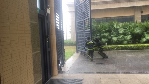Typhoon Mangkhut has departed Macao. Currently, UM working personnel are making post-typhoon arrangements on campus. UM University Council Chair Lam Kam Seng and UM Rector Yonghua Song today (17 September) returned to the campus in the morning to check the impact of the typhoon and to meet with students and working personnel who remained on campus during the typhoon.