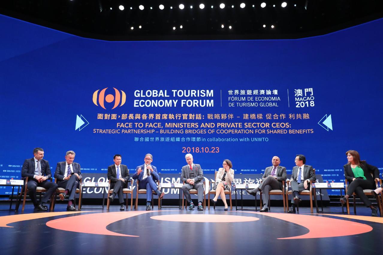 The two-day programme of the Forum is held on 23 and 24 October. In collaboration with the World Tourism Organization (UNWTO), the signature session “Face to Face, Ministers and Private Sector CEOs” unveiled the Day 1 agenda of the Forum. Coming from different countries, ministerial and government officials joined enterprise leaders to proffer their insights as guest speakers. Executive Director of UNWTO, Zhu Shanzhong, delivered an introduction of the session under the topic of “Strategic Partnership – Building Bridges of Cooperation for Shared Benefits”. Guest speakers led an insightful dialogue on the new opportunities brought by 2018 EU-China Tourism Year for China and EU member states to widen their scope of collaboration, as well as how to leverage powerful means such as innovation, technology, travel facilitation and connectivity to enhance cooperation leading to concerted and sustainable development. The panelists include Director General for Tourism and Regional Policy, Federal Ministry for Sustainability and Tourism of Austria, Ulrike Rauch-Keschmann; Vice Minister for Economic Development of Ministry of Economic Affairs and Communications of Estonia, Viljar Lubi; Secretary of State of Tourism of Portugal, Ana Mendes Godinho; Secretary for Social Affairs and Culture of the Macao SAR Government and Executive Chairman of GTEF, Alexis Tam; Undersecretary of Tourism Policy and International Affairs Division of the Ministry of Tourism, Arts and Culture of Malaysia, Mohd Daud Mohd Arif; Chairman of the British Council, Christopher Rodrigues; Chairman Emeritus of TUI Group and Honorary Chairman of GTEF, Michael Frenzel; President and Chief Executive Officer of World Travel and Tourism Council (WTTC) and Honorary Chairman of GTEF, Gloria Guevara Manzo; Chief Executive Officer and General Manager of Thomas Cook China, Alessandro Dassi; Chairman of Mystic Invest, Mário Ferreira; Chief Executive Officer of AS Tallink Group, Paavo Nõgene;and Chairman of the Board of Guangzhou Baiyun International Airport Company Limited, Qiu Jiachen.The session was moderated by Founder & President of Cachet Consulting and Special Advisor to the Secretary General of UNWTO, Anita Mendiratta.