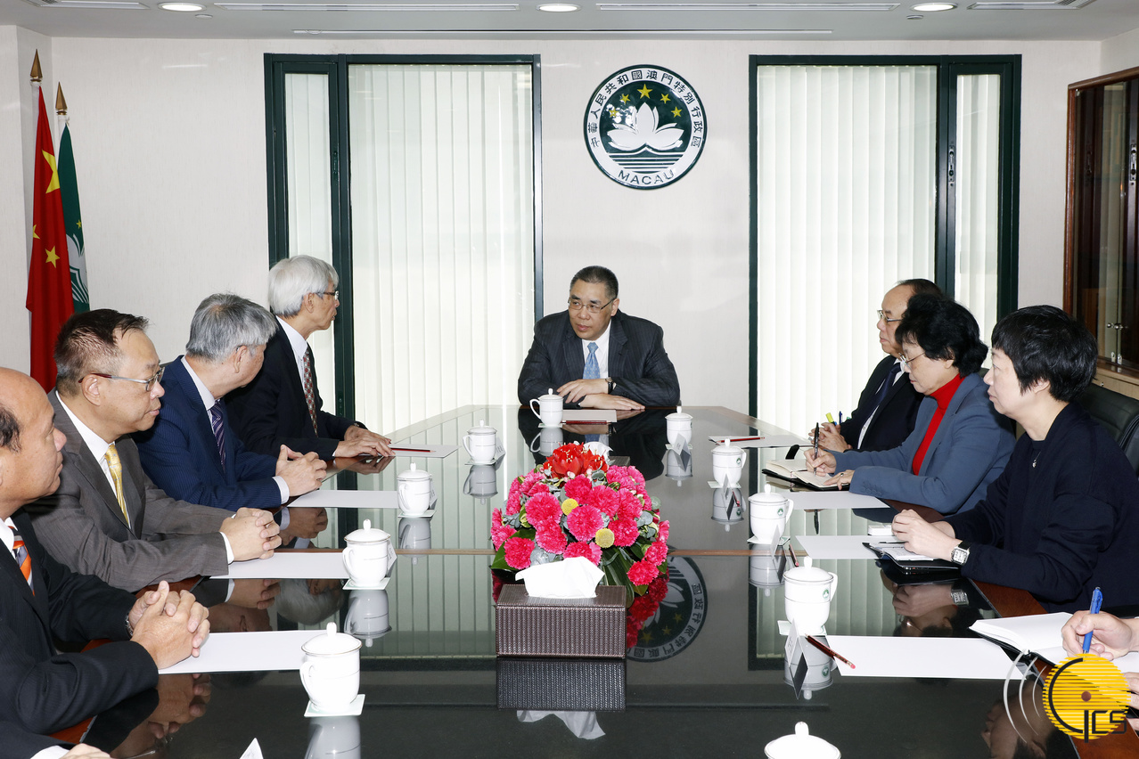 The Chief Executive, Mr Chui Sai On, holds a meeting at the Government Headquarters with a delegation of the Macau Temple Festival Cultural Promotion Association led by its honorary advisor, Mr Leong Heng Teng.