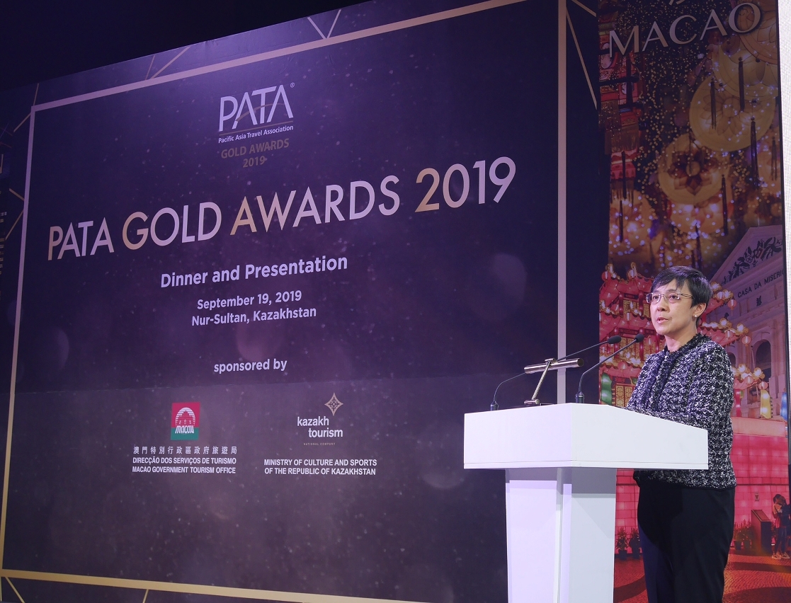 Macao Government Tourism Office (MGTO) enhanced Macao’s destination profile at the Pacific Asia Travel Association (PATA) Travel Mart 2019 in Nur-Sultan, Kazakhstan from 18 to 20 September. One of the event highlights, the 2019 PATA Gold Awards Dinner and Award Presentation, was held today (19 September). MGTO Director Maria Helena de Senna Fernandes is also attending the meetings of the Executive Board and Board of the Association scheduled from 20 to 21 September.