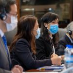 The Secretary for Social Affairs and Culture, Ms Ao Ieong U, attends a plenary meeting of the Legislative Assembly to take questions raised by Assembly members.