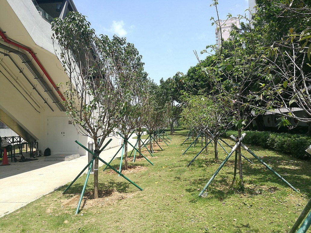 In the selection of tree species, priority is given to tree species grown in southern China where the climate is similar to that of Macao, such as Queen Crape Myrtle, Madagascar Almond, Lance-leaved Sterculia, Spider Tree, Autumn Maple, Hainan Ormosia and Golden Penda. In addition to having pleasant-looking leaves, flowers and fruits, these species are wind and drought resistant. They are planted in seedling form to better balance root and canopy growth, and strengthen the trees’ capacityto abatewind.