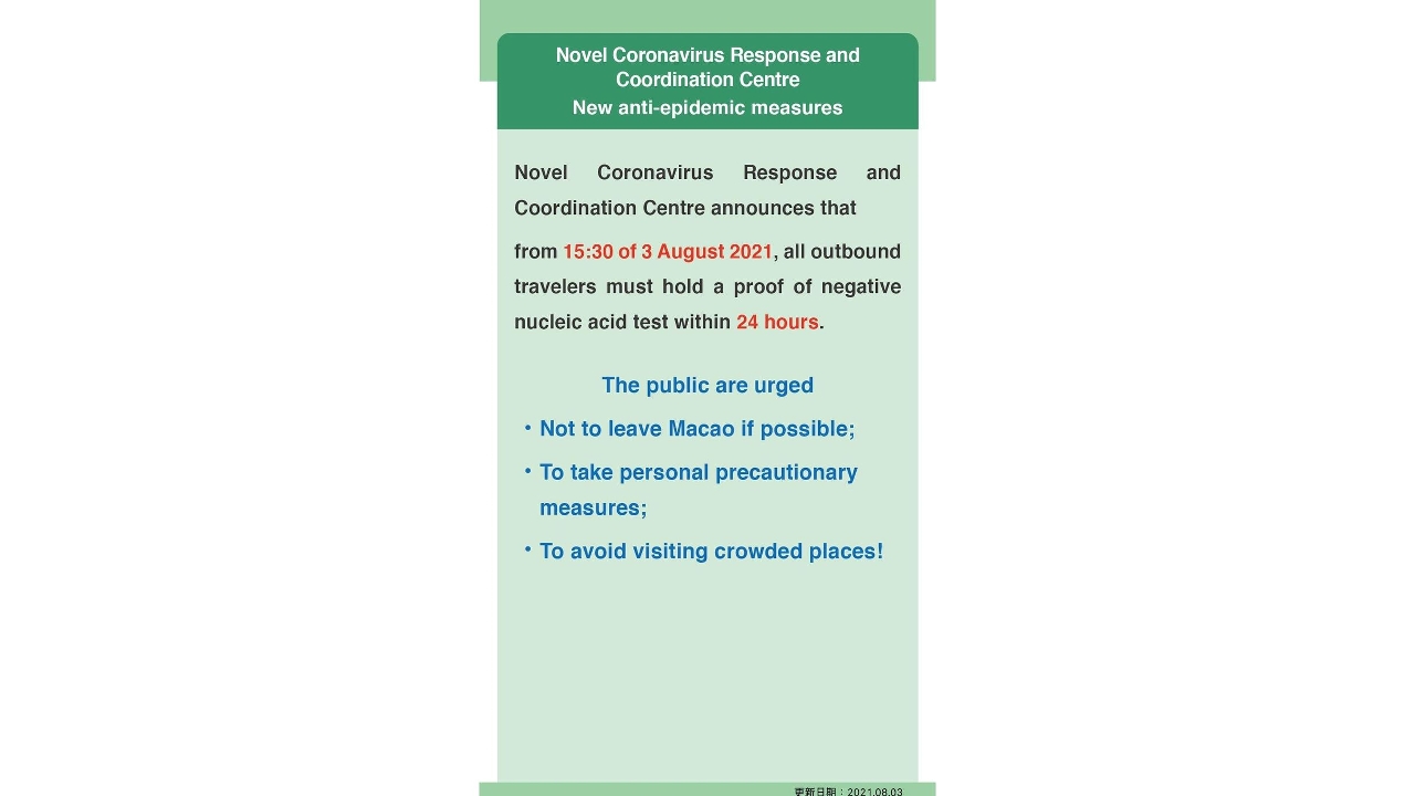 All information on this site is based on the official language of the Macao Special Administrative Region. The English version is the translation from the Chinese originals and is provided for reference only. If you find that some of the contents do not have an English version, please refer to the Traditional Chinese or Portuguese versions.