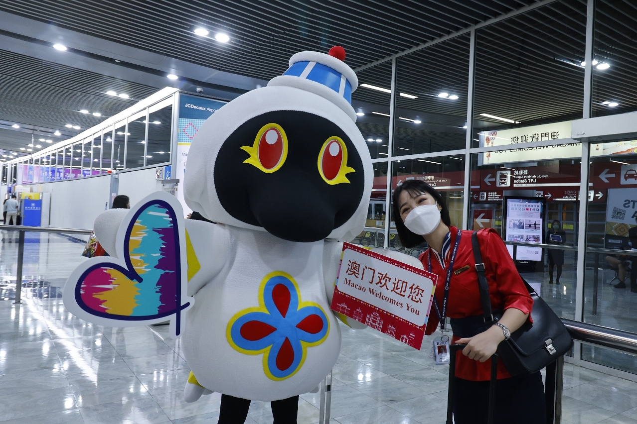 A total of six passenger flights arrived in Macao from the Mainland yesterday (1 September). To highlight Macao as a safe and quality destination among travelers, Macao Tourism Mascot MAK MAK showed up at the Macau International Airport to welcome visitors upon their arrival.