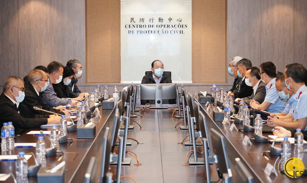 The Chief Executive, Mr Ho Iat Seng, holds a meeting at the Civil Protection Operations Centre to learn more on the work preparation in response to Typhoon Lionrock and epidemic prevention and control.