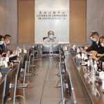 The Chief Executive, Mr Ho Iat Seng, chairs a meeting at the Civil Protection Operations Centre, to review the city's response to passage of Typhoon Kompasu.