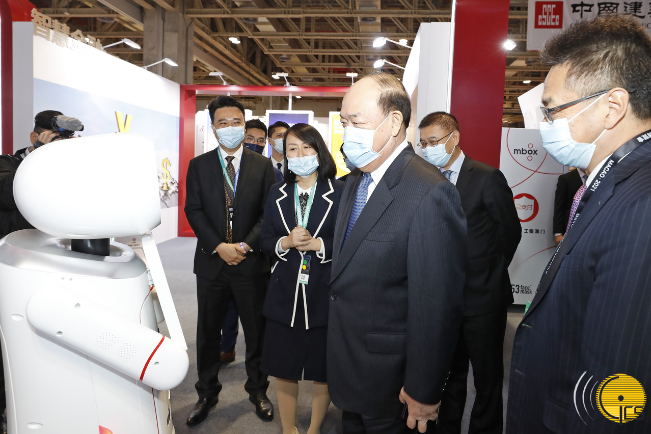 The Chief Executive, Mr Ho Iat Seng, tours the BEYOND International Technology Innovation Expo with guests.