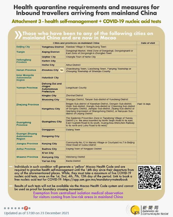 Health quarantine requirements and measures for inbound travellers of different identities.