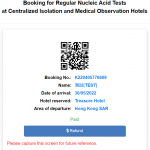 Upon the commencement of the above measure, prospective travelers/returnees who have successfully reserved a room at the medical observation hotel must also book for nucleic acid testing for the medical observation period in advance, by visiting the appointment website provided in the hotel reservation confirmation letter.