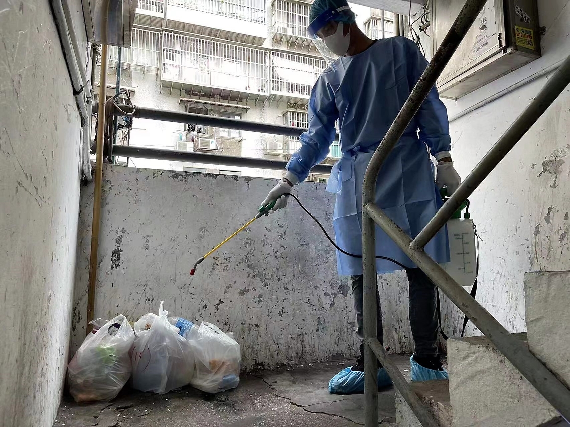 The Subsistence Team provides basic subsistence support for the residents in lockdown zones, including timely distribution of sufficient vegetables and frozen meat food packs to every household and delivery of urgent life supplies on behalf of the friends and relatives of the households. The Municipal Affairs Bureau (IAM) collects the domestic waste of households at the doors from 6:00 p.m. to 8:00 p.m. every evening while cleaning and disinfection of the public space in the buildings are carried out simultaneously. Residents are advised to understand the burden of the frontline personnel and cooperate with anti-epidemic work.