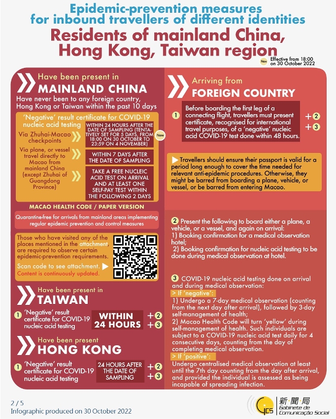 [infographic] Epidemic-prevention measures for inbound travellers of different identities (30 October 2022 )