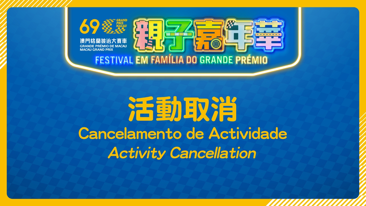 To comply with pandemic prevention and control measures by the Macao SAR Government, the 69th Macau Grand Prix - Family Carnival, originally scheduled to be held at Tap Seac Square from November 5 to 6, has been cancelled.