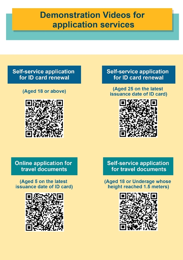DSI recommendedeligible persons to use “Macao One Account” or 24-hour self-service kiosks in higher priority for lodging application. Please scan the relevant QR code for the demonstration videos of electronic application services. Citizens who need to submit application at service counters can make appointment in “Ticketing and Appointment for Counter Service” in “Macao One Account” or on DSI website (www.dsi.gov.mo). For enquiries, please call DSI hotline (2837-0777 or 2837-0888) or email to info@dsi.gov.mo.
