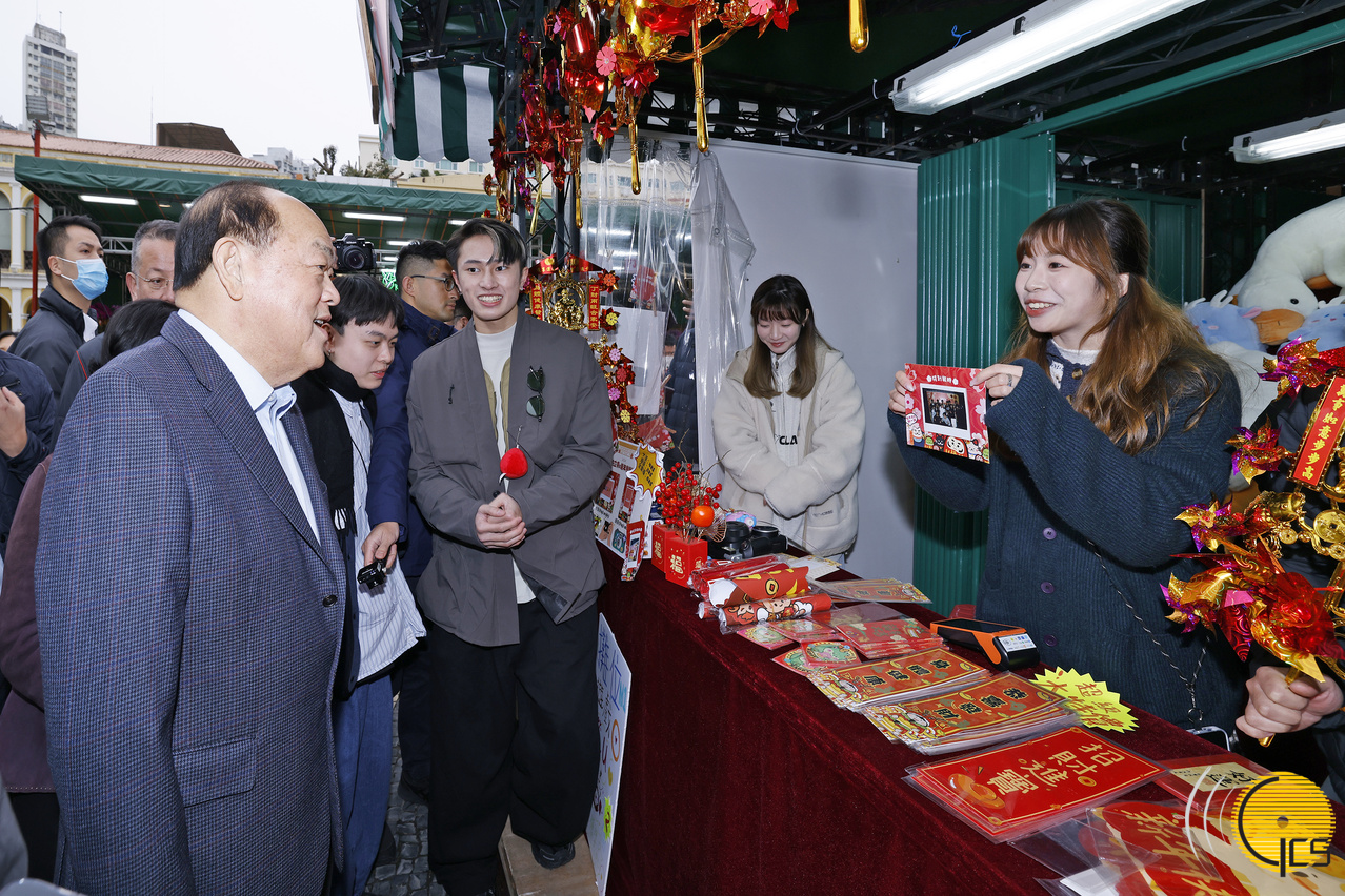 The Chief Executive, Mr Ho Iat Seng, and his wife visit the Lunar New Year fair at Tap Seac Square.
