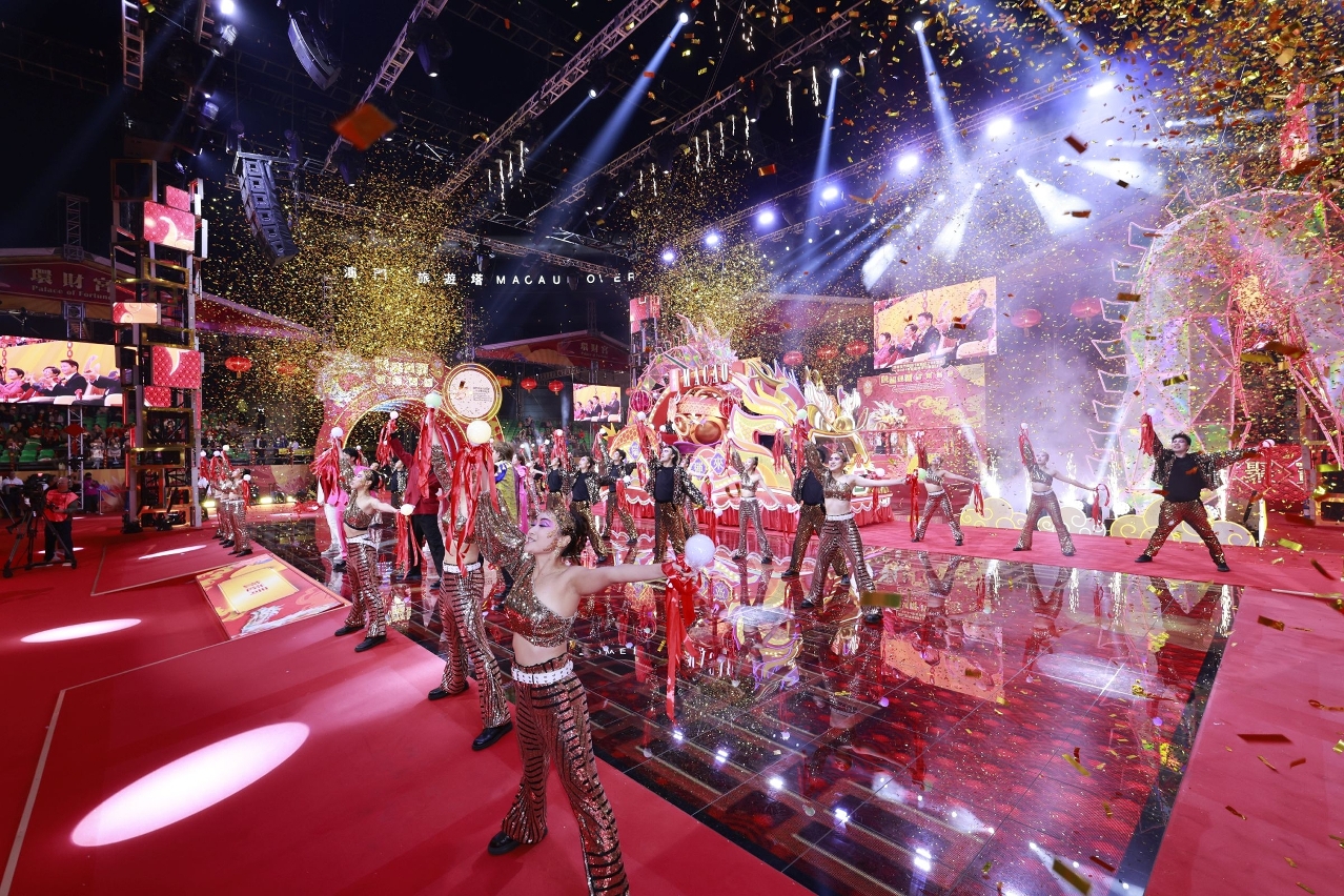 Emcees from Hong Kong and Macao, Bob Lam, Nicosia Lok Fai and Germano Guilherm enlivened the main stage with joyful vibes at Sai Van Lake Square. Gordon Ip and Lincoln Hui from Hong Kong pop group BOP, Macao singers Filipe Tou and Germano Guilherme, Macao pop group MFM and other performers poured great efforts in their finale performances to convey New Year wishes.