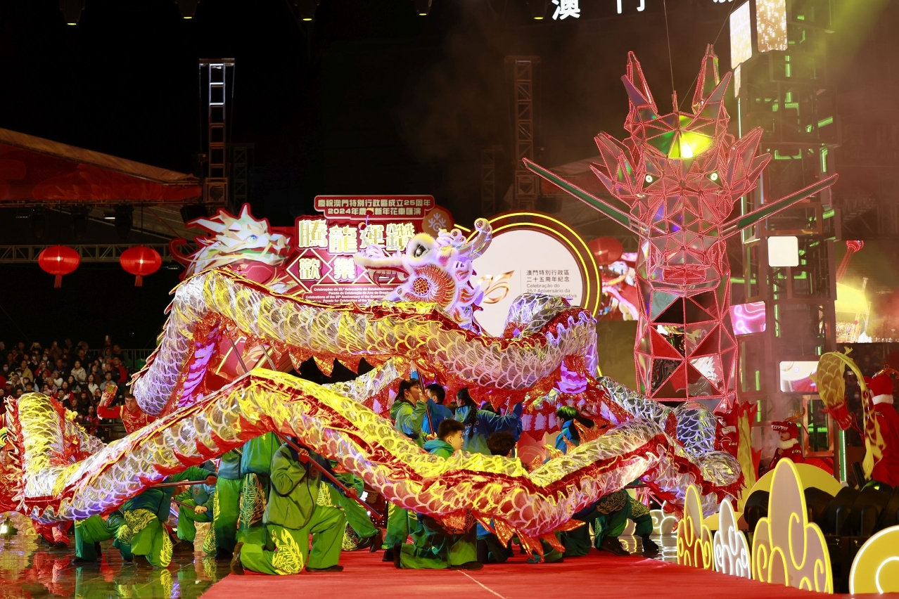 As one of the major Chinese New Year festivities, the “Celebrations of the 25th Anniversary of the Establishment of the Macao SAR – Parade for Celebration of the Year of the Dragon 2024” is grandly unveiled at Sai Van Lake Square tonight (12 February) on the 3rd day of Chinese New Year, followed by the first dazzling show of the Chinese New Year Fireworks Displays. Many local and visiting spectators enjoyed the extravaganzas in celebration of Chinese New Year and the 25th Anniversary of the Establishment of the Macao SAR.