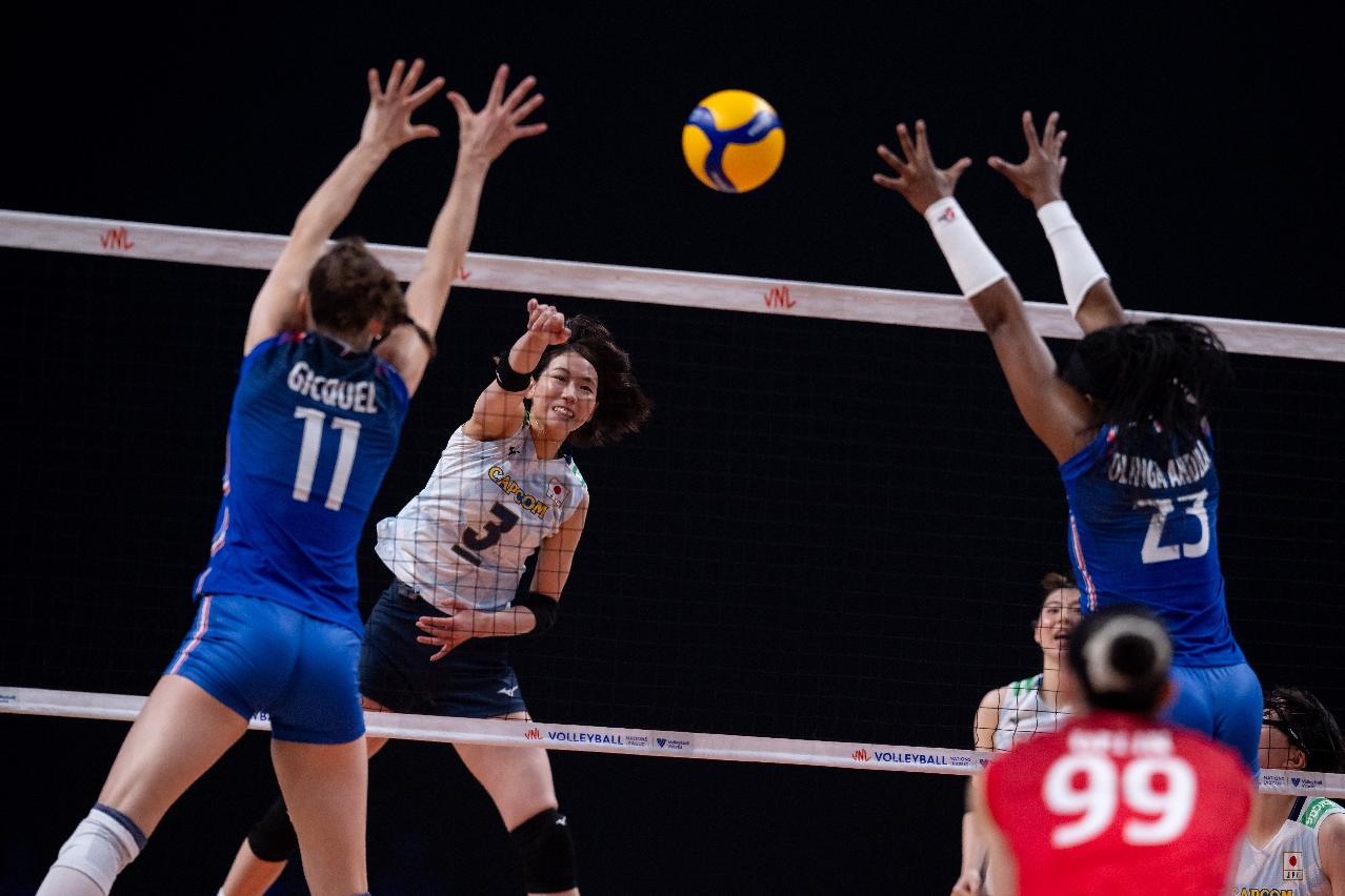 Japan aimed to bounce back against France after narrowly losing to Brazil in the opening match. The Japanese made a quick start with captain Sarina Koga leading the way with nine points, taking the first set 25-14. In the second set, outside hitter Mayu Ishikawa and middle blocker Ayaka Araki carried the scoring load and helped their team build a two-set lead. Japan continued the hot streak in the third set, running away to win 25-15 to finish off the match.