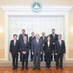 The Chief Executive, Mr Ho Iat Seng, meets with distinguished scientist, Rector of the University of Coimbra, and Honorary Doctor of Science of the Macao Polytechnic University, Mr Amílcar Falcão, at the Government Headquarters in Macao.