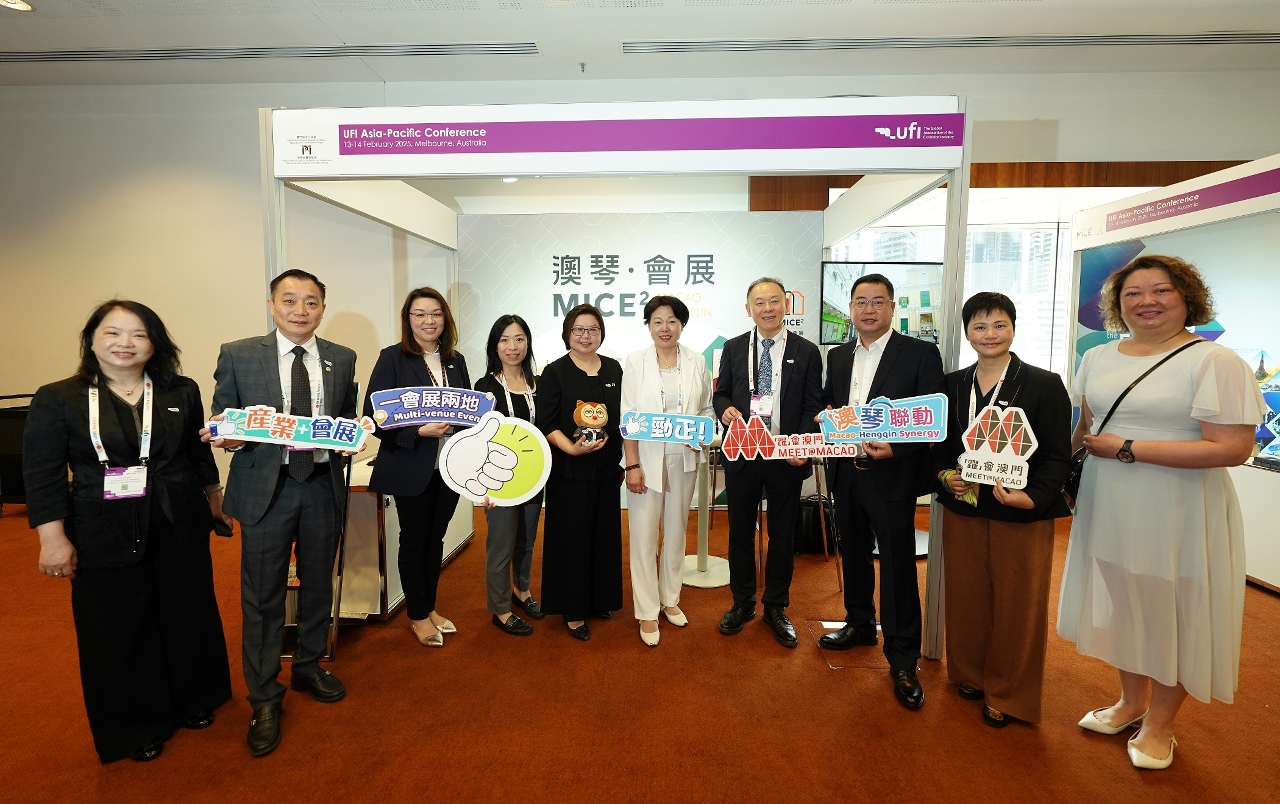 To aid MICE industry in the Greater Bay Area in expanding the international markets, the Commerce and Investment Promotion Institute (IPIM) collaborated with industry players to organise a delegation of over 50 representatives from the Greater Bay Area to participate in the “2025 UFI Asia Pacific Conference” held in Melbourne, Australia, to showcase the MICE strengths of the Greater Bay Area.