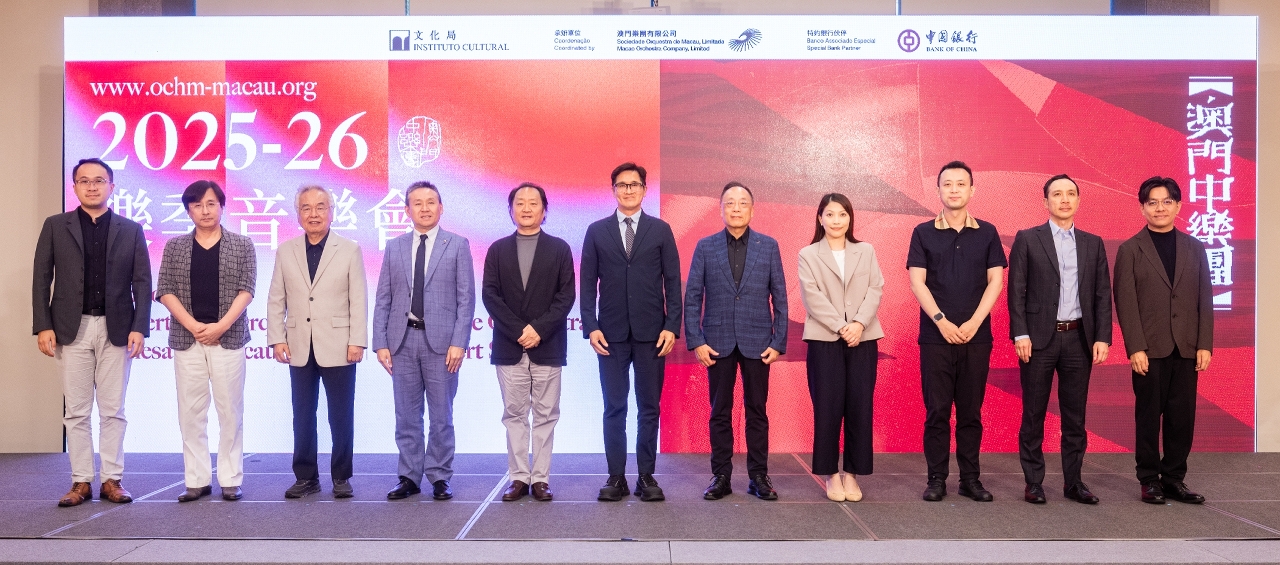 The press conference of the Macao Chinese Orchestra 2025–26 Concert Season was held today (29 August) at the Conference Room of the Macao Cultural Centre, and was attended by the Acting President of the Cultural Affairs Bureau, Cheang Kai Meng; the Acting Vice President of the Cultural Affairs Bureau, Kuok Mio U; the General Manager of Banking Center of the Bank of China Macau Branch and Director Executive of Societies and Business Associations, Leong Sai Kun; the member of the Board of Directors of the Macao Orchestra Company, Limited, Jimson Hoi; the Music Director and Principal Conductor of the Macao Chinese Orchestra, Zhang Lie; the composers of Eastern Radiance, Park Bum-hoon, Kaoru Wada and Luo Maishuo; the Executive Director of the Macao Orchestra Company, Limited, Lo Sek Ieong; the Resident Conductor of the Macao Chinese Orchestra, Liao Yuan-Yu; and the Artistic Planning Manager, Brian Cheong. At the press conference, musicians of the Macao Chinese Orchestra performed the festive musical piece Panning for Gold, giving a warm blessing for the new Concert Season.
