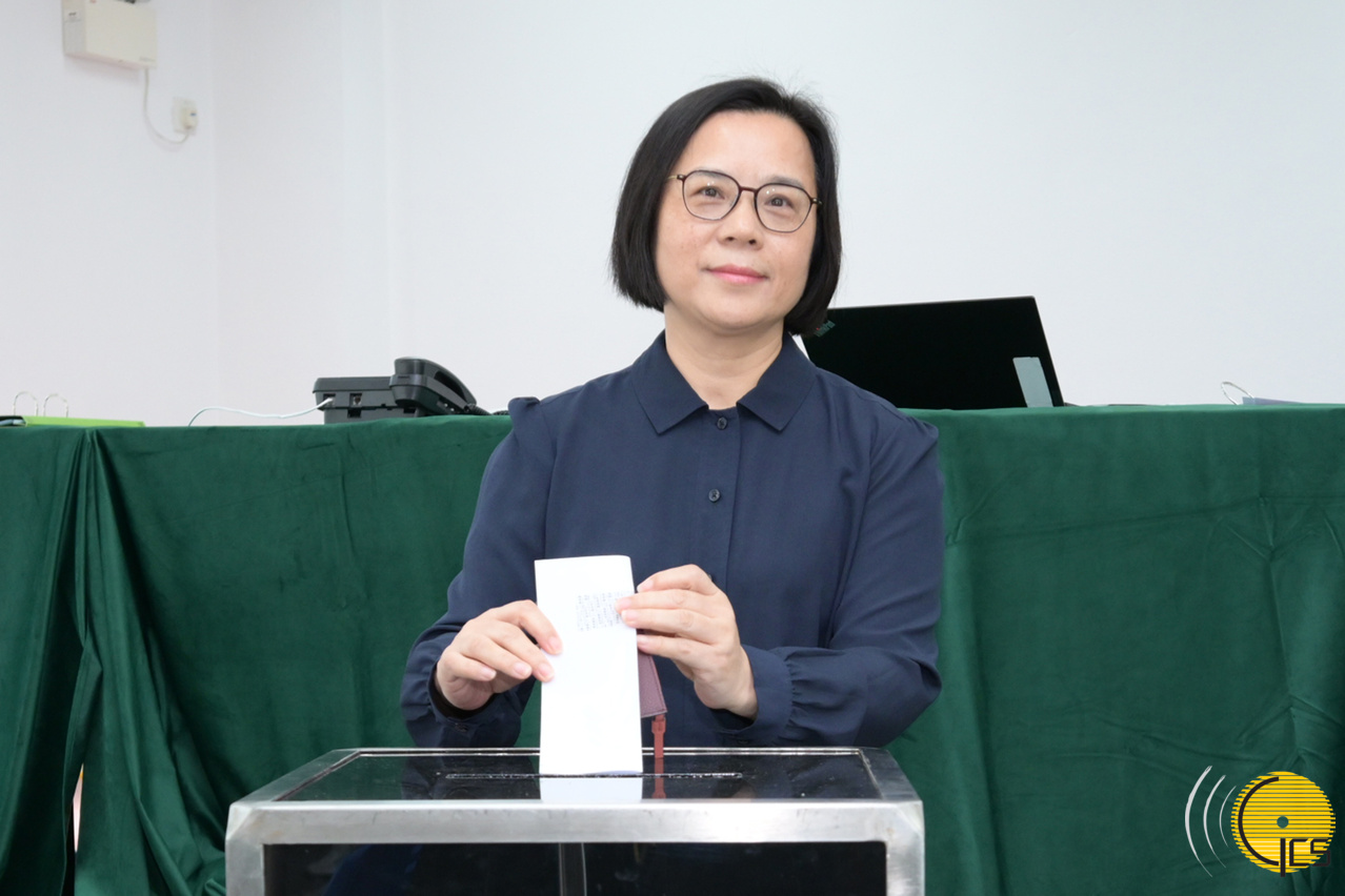 The Commissioner of Audit, Ms Ao Ieong U, cast her ballot at the Sacred Heart Canossian College (Chinese Section) polling station and urged all eligible voters to exercise their right to vote in a timely manner.