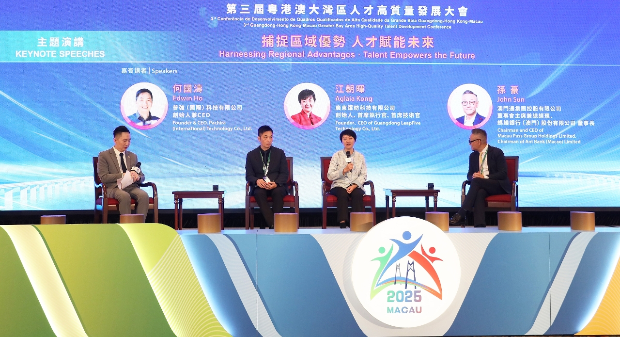 The third Guangdong–Hong Kong–Macao Greater Bay Area (GBA) High-Quality Talent Development Conference (hereinafter referred to as the ‘Conference’), jointly organised by the Talent Development Committee of the Government of the Macao Special Administrative Region, the Labour and Welfare Bureau of the Government of the Hong Kong Special Administrative Region, the Human Resources and Social Security Department of Guangdong Province, and the Hong Kong and Macao Affairs Office of the People’s Government of Guangdong Province, is being held from 22 October for four consecutive days at the Cotai Expo, at the Venetian Macao. Under the theme ‘Look Beyond the Horizon, Embrace Diversity and Inclusiveness, and Forge Ahead with Resolve to Build an International Hub for High-Calibre Talent’, the government of the three regions aim to showcase the Greater Bay Area’s talent policies and achievements, as well as its developmental advantages and opportunities, with the goal of attracting top talent from around the world to gather and develop in the Bay Area, thereby advancing the construction of a high-quality talent hub in the Greater Bay Area.