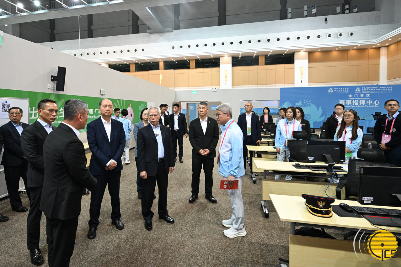 Throughout the tour of the Macao Competition Zone, Mr Sam received detailed briefings regarding event preparations, volunteer coordination, athlete arrangements, and deployments concerning medical, security, and transport matters. He confirmed that technical setup had been completed at all Macao competition venues, with personnel and support systems fully operational. He expressed confidence that the high-level coordination between all Macao Organising Committee members would ensure quality event delivery and effective response capabilities.