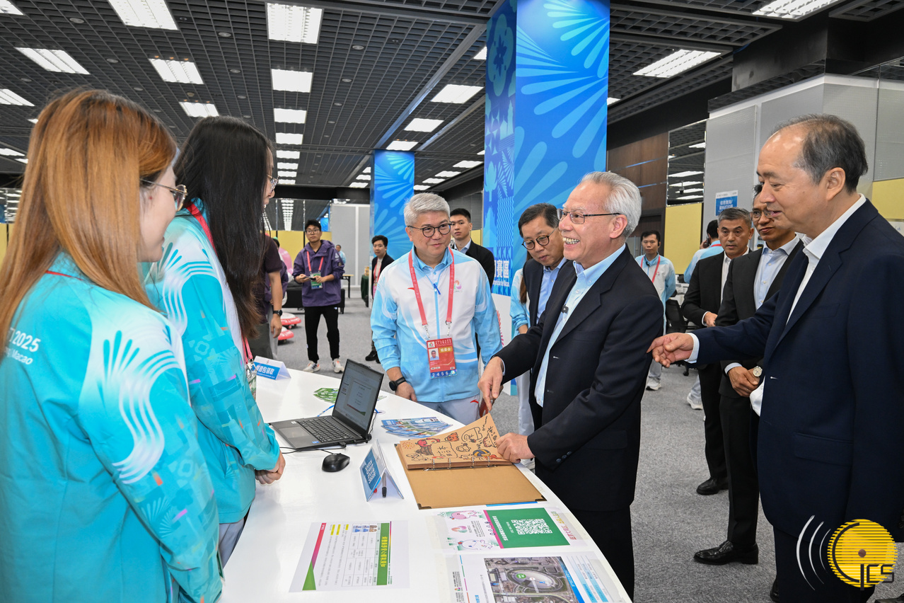 The Chief Executive visited athlete accommodation for interactions with competitors, and inspected the Command Centre, the Main Press Centre, and the International Broadcast Centre at the Macao East Asian Games Dome, where Mr Sam had words of encouragement for volunteers and operational staff.
