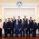 The Chief Executive, Mr Sam Hou Fai, and the Mayor of Beijing, Mr Yin Yong, pose for a group photograph prior to a meeting held at the Government Headquarters in Macao.