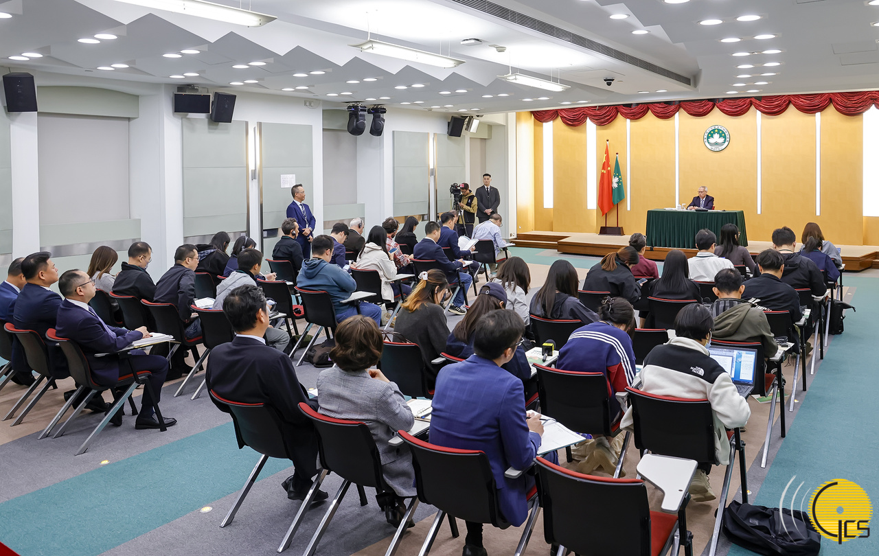 The Chief Executive, Mr Sam Hou Fai, meets the press at the Government Headquarters after delivering the 2026 Policy Address.