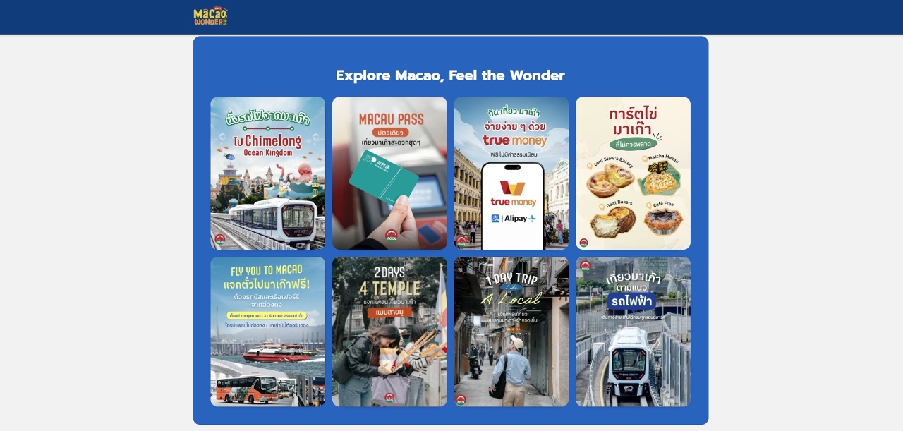 From 1 to 15 November, Macao Government Tourism Office (MGTO) organized an online-offline promotional event known as “Macao Wonder Fest 2025” in Bangkok, Thailand. Tailored for visitors from target market segments, an array of time-limited travel offers were launched on platforms in partnership with several airlines, online and offline travel agencies, while flash sales booths were set up at a BTS Skytrain station (along Bangkok Mass Transit System) within the famous shopping district of EM. Through offline promotion which led potential consumers onto the online sales platform, the Office actively brands Macao as an ideal destination for Thai residents, to expand this international visitor market in Southeast Asia.