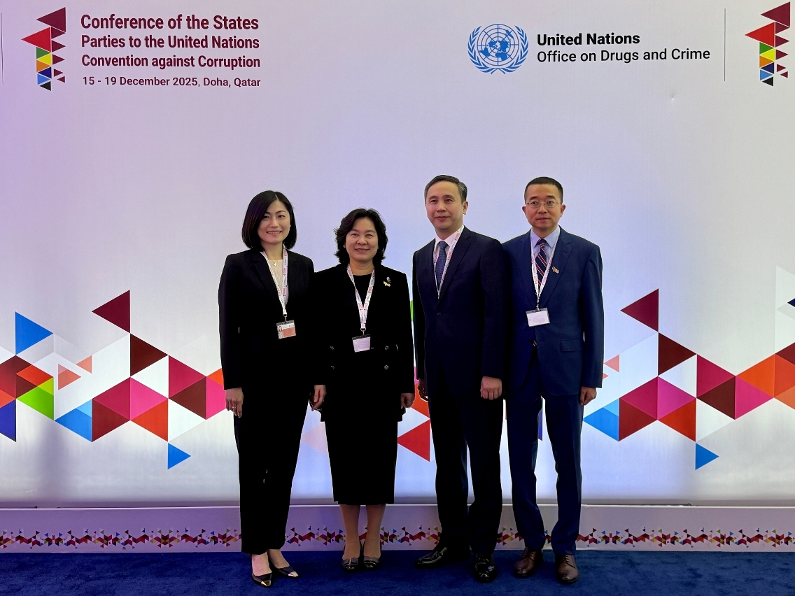 A delegation led by the Commissioner Against Corruption, Ao Ieong Seong, as members of the Chinese delegation, attended the 11th session of the Conference of the States Parties to the United Nations Convention against Corruption (UNCAC) in Doha, Qatar, on 15th December. The head of the Chinese delegation, Vice Foreign Minister, Hua Chunying, attended the opening ceremony and delivered a speech.