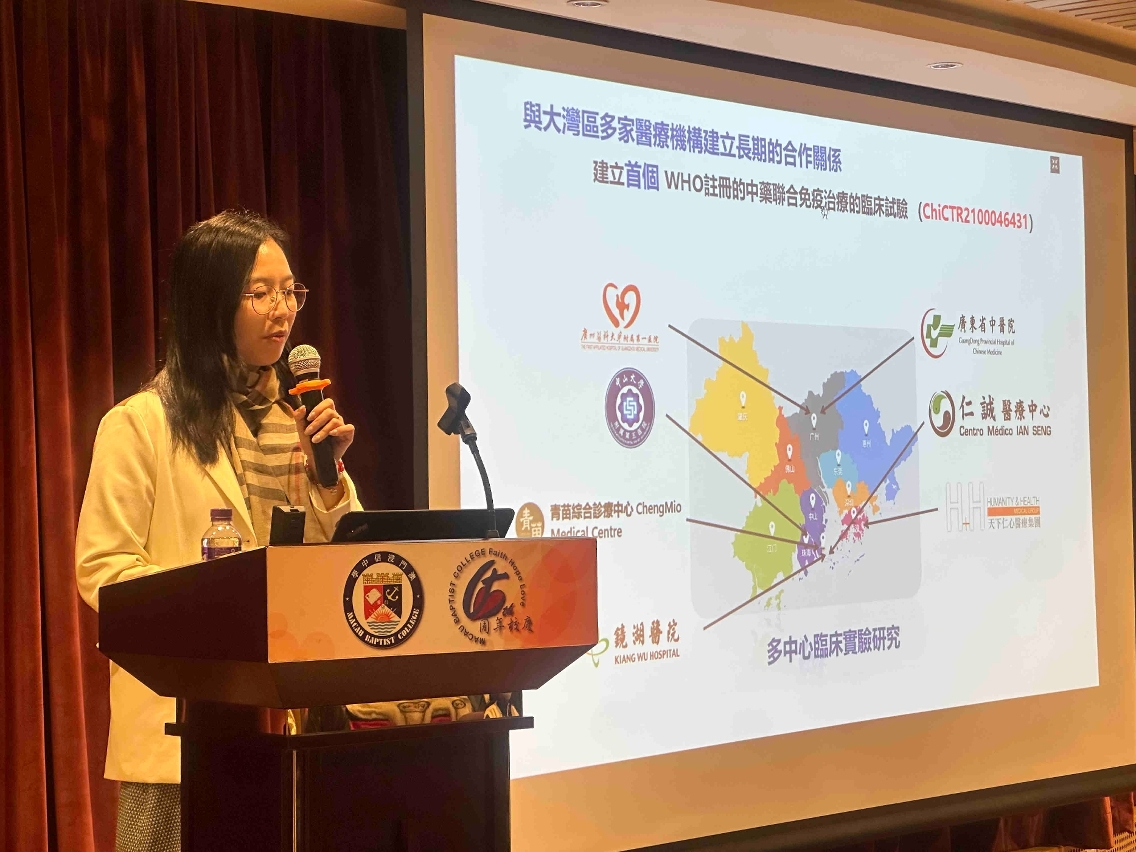 Leung Lai Han, professor in FHS, delivered a talk titled ‘Research Techniques and Methods for the Modernisation of Traditional Chinese Medicines’. She shared cutting-edge research that combines TCM with advanced technologies to address challenges in cancer treatment. She explained how her research team used multi-omics and AI to identify active ingredients and understand the mechanisms of action of TCM, and shared their breakthroughs in using ginseng polysaccharides to enhance immunotherapy efficacy. Leung also highlighted the interdisciplinary nature of health sciences and biomedical innovation, and encouraged students to build a strong academic foundation and engage in cross‑disciplinary learning.