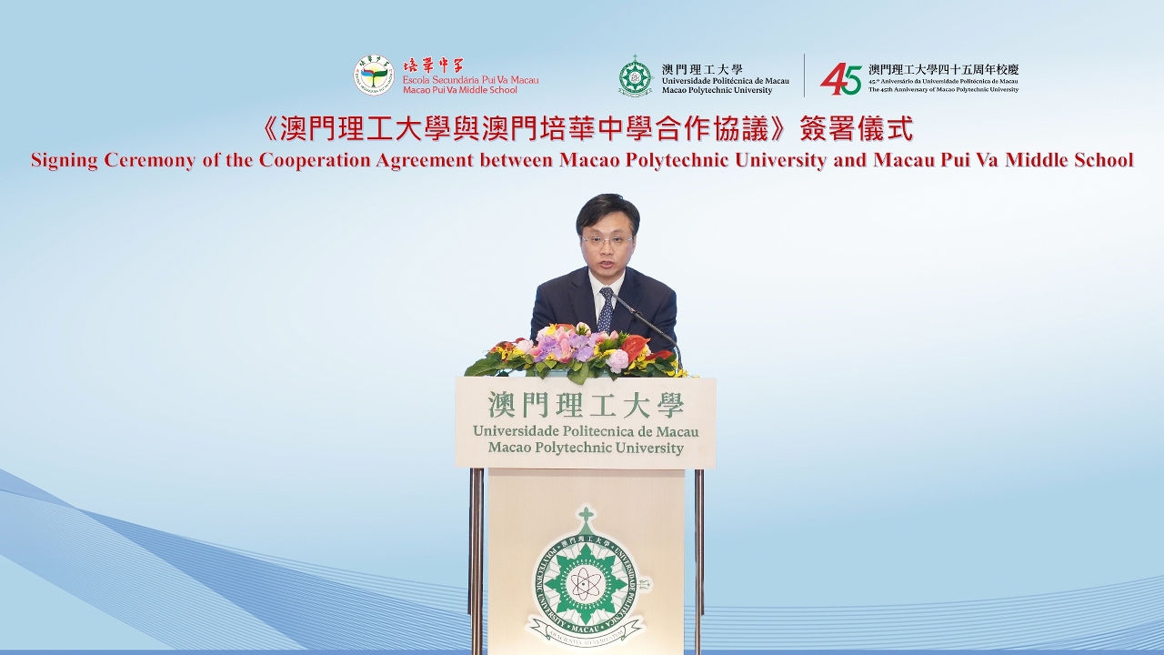 Marcus Im stated in his address that the signing of this agreement reflects MPU’s ongoing commitment to its “Rooted in Macao” educational philosophy, working hand in hand with society to nurture outstanding talents. He emphasised that MPU actively advances the national development plan’s call to “accelerate high-level technological self-reliance and strength,” by offering interdisciplinary degree programs, developing “AI+” research, and driving Macao’s diversified industrial development through technological innovation, while contributing to the construction of the Greater Bay Area’s international innovation hub. Through the cooperation platform with Pui Va Middle School, students will learn to explore AI+, practice collaboration and responsibility, and enhance their overall abilities, while higher and basic education join forces to contribute to the nation and Macao’s educational development.