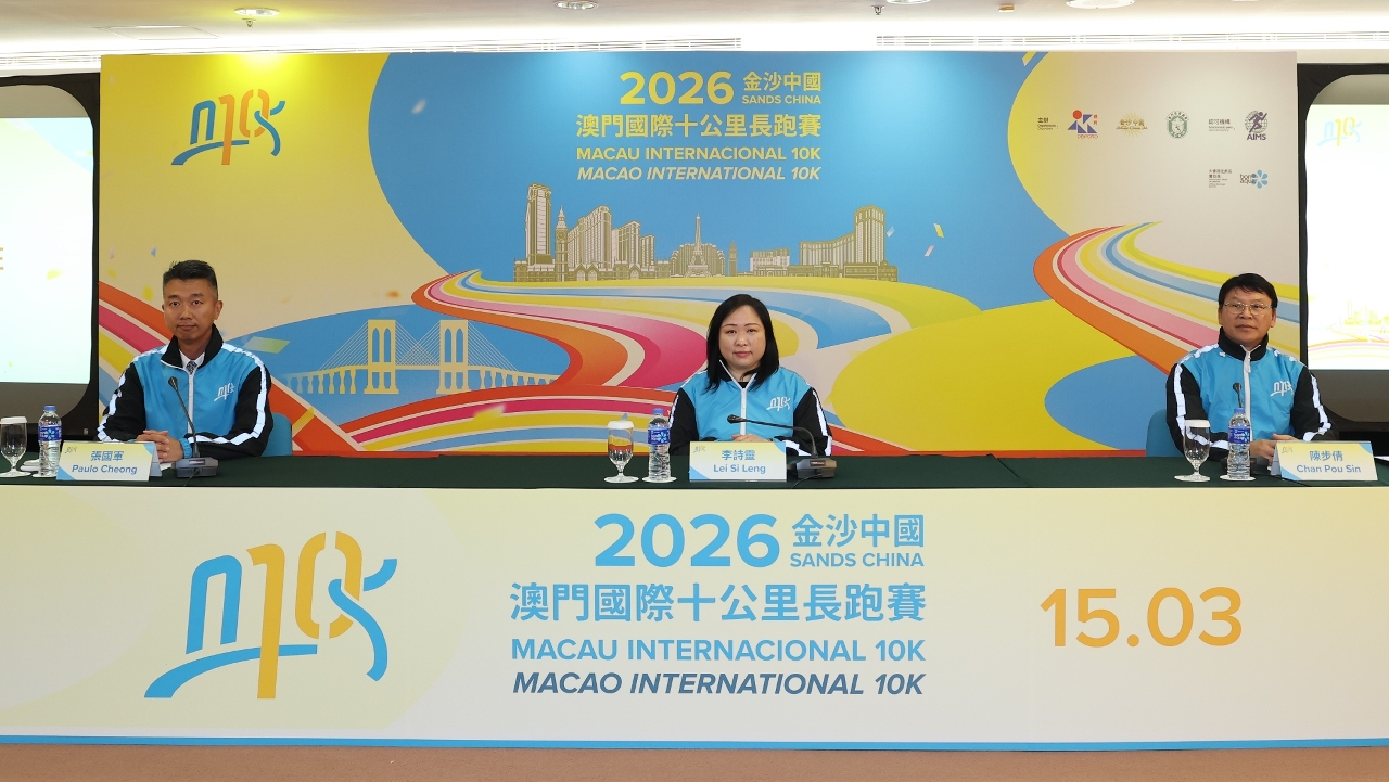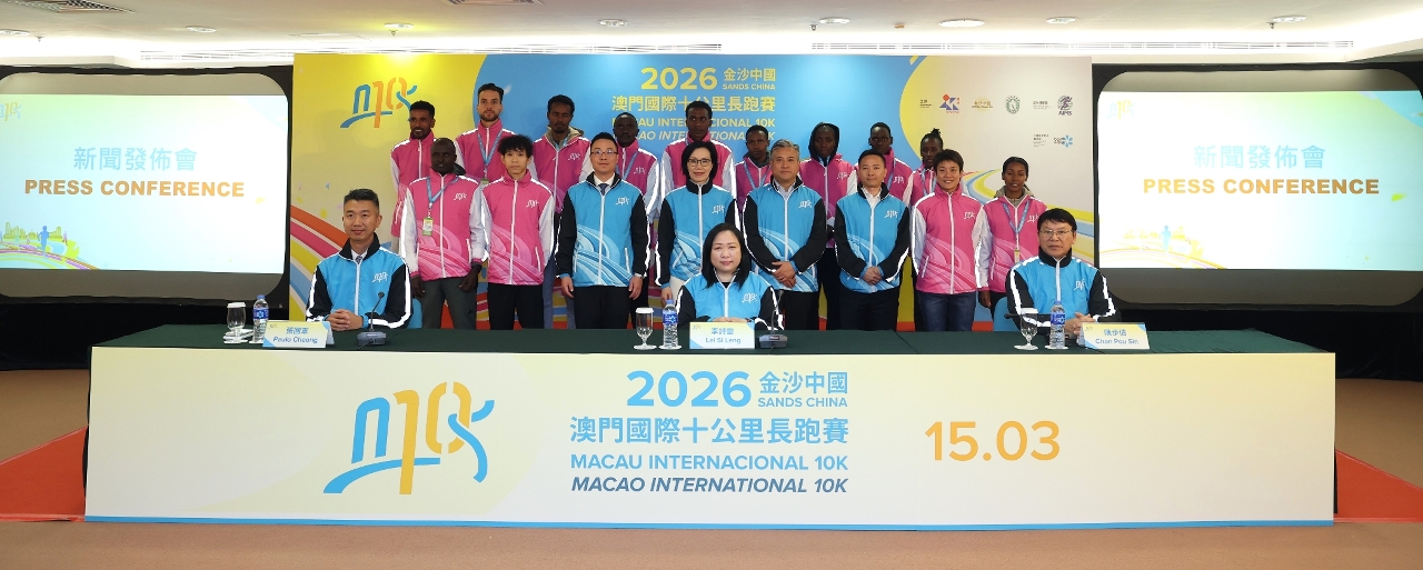 Organized by the Sports Bureau, Sands China Ltd. and the General Association of Athletics of Macau (AGAM), the 2026 Sands China Macao International 10K will be held on 15 March. The Organizing Committee held a pre-event press conference today (13 March) to announce event details and relevant information and arrange for a number of invited long-distance runners to meet the media.
