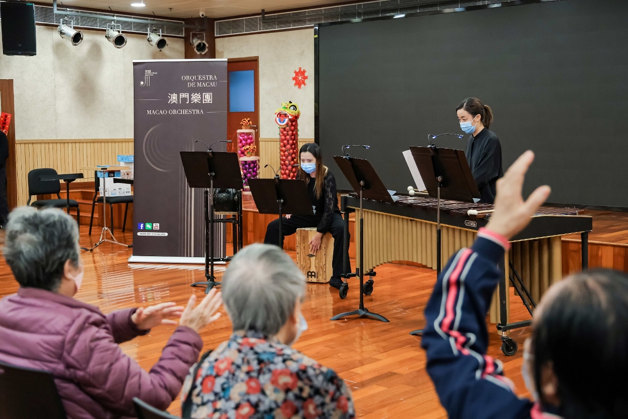 The Cultural Affairs Bureau and the Macao Orchestra Company, Limited continue to preset music performances in the community. During the Chinese New Year, the Macao Orchestra held the “Music of Love” community concerts series. The percussion section of the Orchestra visited several local elderly homes and special education schools from 24 to 27 February, giving a warm blessing to the elderly and students through joyous and lively music.