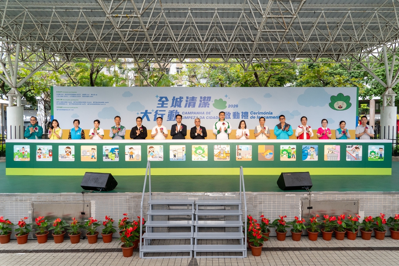 The “Citywide Clean-up Campaign” is fully promoted by all member departments of the “City Beautification and Cleaning Working Group”. Participating representatives of associations and organisations also include Hoi Lok Man, Chairwoman of the Consultative Committee on Municipal Affairs of IAM; Lam Lon Wai, Chairman of the Macao Federation of Trade Unions; Chao I Sam, Vice President of União Geral das Associações dos Moradores de Macau; Chong Leng Leng, Vice President of the Women’s General Association of Macau; Tong Ho Laam, Executive Director of Aliança de Povo de Instituição de Macau; Xue Wanna, Chairwoman of the Property Management Business Association Macao; Chan Kin Ieng, President of the General Association of Macao Cleaning Service Industry; and Hong Cheong Fai, Managing Director of Macau Residue System Company, Ltd.