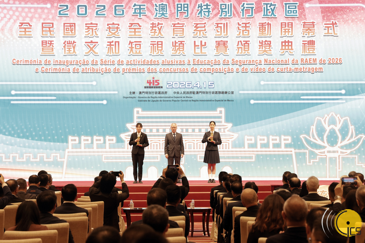 The Chief Executive and Chairman of the Committee for Safeguarding National Security of the Macao Special Administrative Region, Mr Sam Hou Fai, attends the opening ceremony of the 2026 National Security Education Series Activities and award presentation ceremony of the Essay and Short Video Competition of the MSAR.