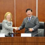 The University of Macau (UM) recently signed a Memorandum of Understanding (MOU) with the United Board for Christian Higher Education in Asia (UB) to enhance academic collaborations and the development of higher education in Asia. Under the MOU, UM and UB will explore the possibilities of joint PhD scholarships in selected fields for junior faculty members of Asian universities, collaborations in supporting initiatives at universities in mainland China and elsewhere in Asia to improve faculty teaching-learning practices, as well as other academic exchange programmes of mutual interest between UM and UB's partner institutions in Asia. The delegation, consisting of 23 trustees and staff of its New York and Hong Kong offices, were warmly received by UM Rector Wei Zhao, Vice Rectors Prof. Simon Ho and Prof. Haydn Chen, College Masters Prof. George Watt and Prof. Kevin Thompson, Honours College Dean Prof. Mok Kai Meng, Librarian Dr. Paul Poon, and Centre for Teaching and Learning Enhancement Director Prof. Spencer Benson. Prof. Simon Ho, Prof. Haydn Chen, and Prof. Benson told the guests about UM's latest developments, including the 4-in-1 mode of education, the general education programme, internationalisation strategies, research development, the residential college system, as well as teaching and learning initiatives. UB Board of Trustees Vice Chair Dr. Judith Berling, UB President Dr. Nancy Chapman, and UB Vice President for Programmes Dr. Glenn Shive shared the mission and vision of UB and its recent development with UM colleagues. The UB delegation toured the new campus after the meeting. They visited the new library and the various teaching facilities, saying that the new campus was very beautiful and well-planned.