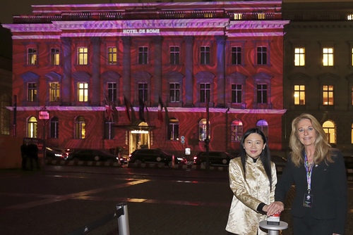 Macau Government Tourist Office (MGTO) is holding a high-profile promotion in Berlin, centered on a Macau 3D video mapping show, titled “Touching Moments”, which is being presented at the world famous Festival of Lights, now running at the German capital, to showcase the city’s tourism appeal in a creative and impressive way, in order to attract more visitors from Germany and Europe. MGTO Deputy Director Cecilia Tse was in Berlin for the promotion, along with the Head of Tourism Product and Events Department, Doris Leong, and the Head of Marketing Division, Cora Vong. On Thursday (15), Cecilia Tse presided over a dinner-reception for travel trade partners, media representatives and other guests at the historical Hotel de Rome, on which facade the Macau video mapping show is being projected. At the occasion, Cecilia Tse, joined by the Festival of Lights Managing Director and Organizer Birgit Zander, held a celebration event ceremony of the Macau’s video mapping show at the facade of the landmark hotel, located in the heart of Berlin. “Our debut at the stunning Festival of Lights offers a great exposure as well as a learning opportunity to Macau as a tourism city. Since last year, Macau Government Tourist Office has been using this creative and impressive modern tool of video mapping to promote the city in Mainland China and abroad. At the same time, we have been testing the waters to introduce regular 3D video mapping displays in Macau as well,” Cecilia Tse remarked at the MGTO organized dinner-reception. The Macau 3D video mapping show “Touching Moments” is being displayed at the 11th Festival of Lights, which opened on October 9 and closes today (October 18). Portraying in an innovative way the cultural and tourism elements of Macau via its emblematic lotus flower, the five minutes-long illumination will have a total of around 150 screenings for the ten nights of the festival. The Macau projection has been seen by the crowds of viewers attending the international festival, as the annual mega-event that turns Berlin into a city of light art displayed on its monuments and buildings, already developed into an important tourism magnet, drawing over two million visitors from Berlin, Germany, Europe and around the world. Cecilia Tse also met with the Director for Market Management of Visit Berlin, Ralf Ostendorf, on October 13, to exchange views on tourism development, and to learn with the experience of Berlin, which has evolved as one of the fastest growing tourism cites in Europe leveraging on cultural tourism. In tandem with the Macau video mapping presentation, MGTO also held other high-impact promotional activities in Berlin to maximize the exposure gained during the popular Festival of Lights. A radio campaign about Macau was running in cooperation with the German station Spreeradio, as well as a promotion on the city’s cabs touring the streets of Berlin, this one lasting until beginning of November, among other initiatives, to enhance the recognition of Macau and its attractions as a tourism destination.