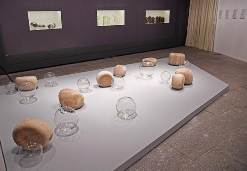 This exhibition features twenty pieces (sets) of Wang’s glass installations. Her works are rich in oriental cultural elements. Among them, the work “Poetic Stones” is inspired by the Buddhist ode of The Ten Ox-herding Pictures and ancient Chinese phonology. Twenty-eight black stone-shaped glass of different shapes and sizes are displayed in four rows with seven in each row, corresponding to the rhythm of seven words quatrains. She uses lines at her works, making large circles as the level tone, while small circles as the oblique tone. Each circle refers to a moment, a stone refers to a rhyme. There is no way back and no interval in the course of glassblowing, just like calligraphy writing. The creation process has to be completed without interval and reversal, corresponding with the artist’s perception of “living at the moment”.