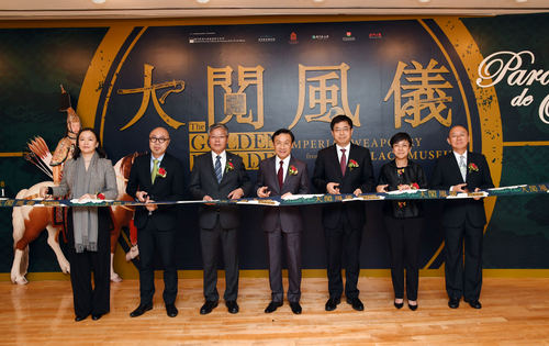 Jointly organised by the Macao Museum of Art (MAM) of the Cultural Affairs Bureau, the Palace Museum, the Macao Foundation, the Macao Government Tourism Office and the Macao Daily News, the exhibition “The Golden Parade – Imperial Weaponry from the Palace Museum” was inaugurated today, 15 December, on the 4th floor of MAM. The exhibition features weaponry, equipment and devices produced by the imperial workshops, tributes from different regions of China and gifts offered by different countries to the Qing court, revealing the grand reviews of troops by the Qing emperors, imperial hunting, military drills and the military system itself, among others. The exhibition, which runs until 11 March 2018, allows visitors to comprehend political and military aspects and the life of the Imperial Palace court during the Qing dynasty, as well as the importance that the Qing attached to military power.