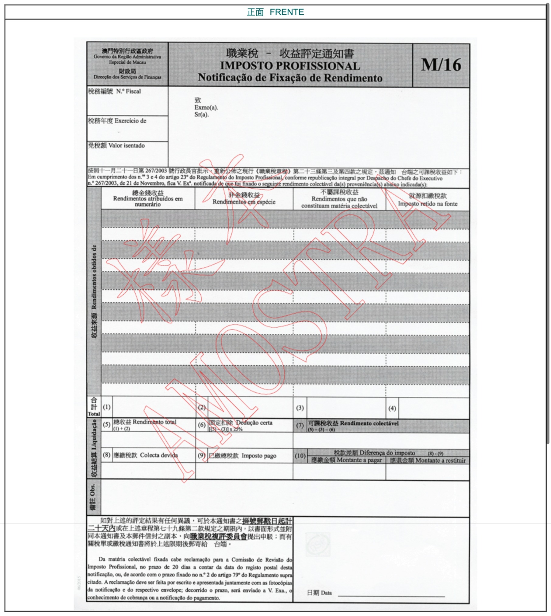 - A copy of the Salaries Tax-M/16-“Notification of Income Assessment” and the relevant envelope.