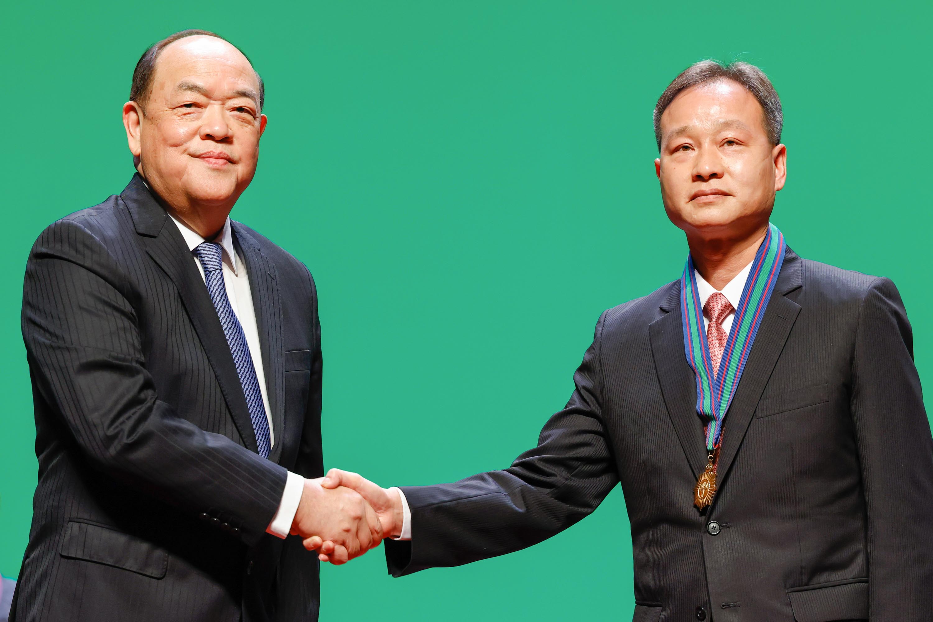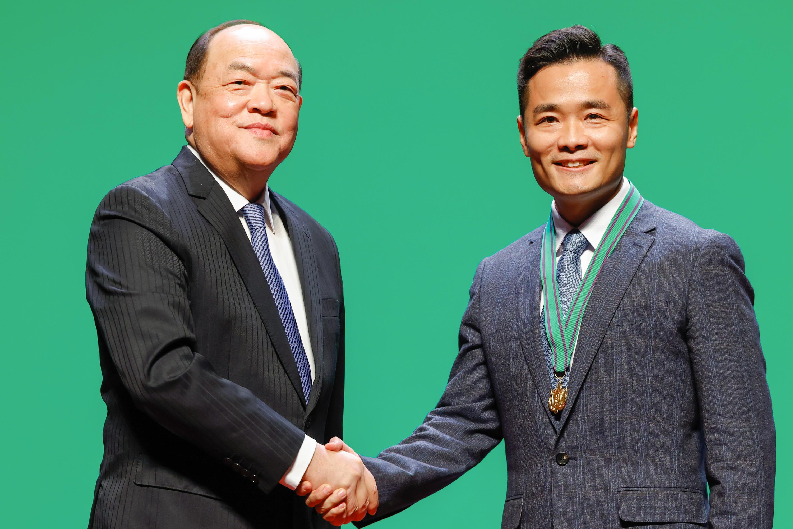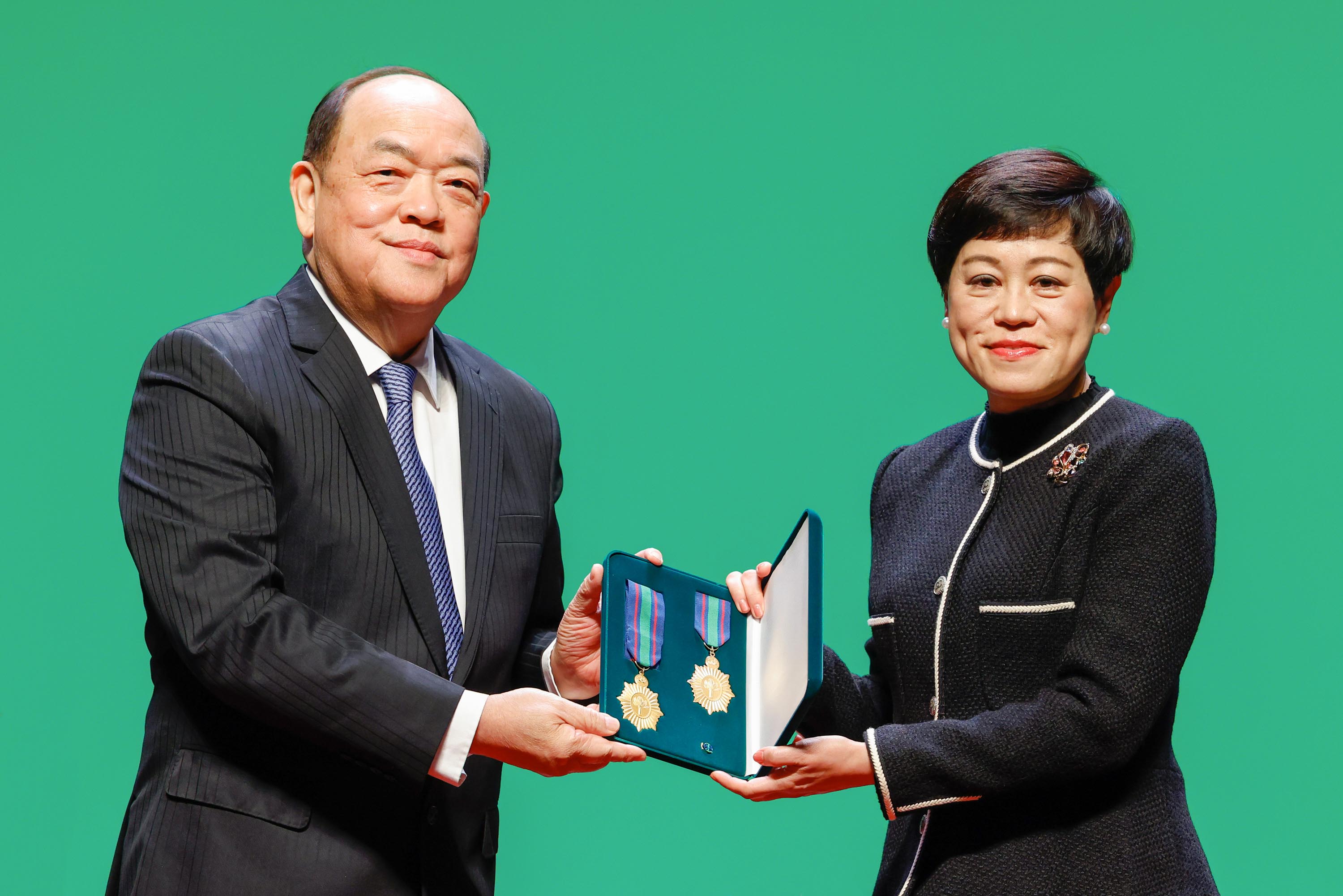 行政长官贺一诚在典礼上向34名人士或实体代表颁授了勋章、奖章和奖状。
