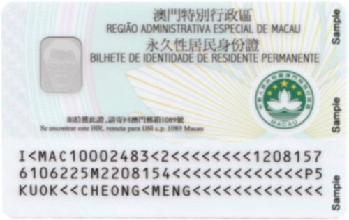 Bilhete de Identidade de Residente da RAEM do tipo “cartão inteligente” (verso)