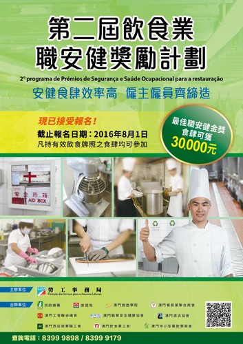 Já se encontram abertas as inscrições para a “2ª Edição do Prémio de Segurança e Saúde Ocupacional no Sector da Restauração” organizado pela Direcção dos Serviços para os Assuntos Laborais (DSAL), em conjunto com o Instituto para os Assuntos Cívicos e Municipais, Direcção dos Serviços de Turismo, associações de trabalhadores e comerciais do sector da restauração de hotéis e outras associações de segurança e saúde ocupacional. Podem candidatar-se todos os restaurantes que sejam titulares de licença de exploração de restaurante válida e seus trabalhadores, sendo que os prémios podem ir até às 30 000 patacas. Para permitir que os indivíduos daquele sector conheçam melhor as informações desta actividade, a DSAL organiza, no dia 17 de Junho (sexta-feira), das 15:30 às 16:30, no Centro de Formação de Segurança e Saúde Ocupacional da DSAL, sito na Rua de Francisco Xavier Pereira, Edifício Industrial Pou Fung, 2º andar, uma sessão de esclarecimento sobre a “2ª Edição do Prémio de Segurança e Saúde Ocupacional no Sector da Restauração”, convidando os restaurantes locais a destacar trabalhadores para participarem nesta sessão. Os interessados podem telefonar para 8399 9898 / 8399 9179 antes do dia 15 de Junho para se inscreverem.