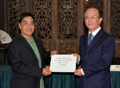 O Ministério da Cultura da RPC e a Secretaria para os Assuntos Sociais e Cultura do Governo da RAEM organizaram, no dia 13 de Abril, pelas 16:30 horas, na Casa do Mandarim, a Cerimónia de Assinatura do “Plano de Execução de Intercâmbio Cultural e de Cooperação entre a China Continental e a RAEM 2016-2018” e a Cerimónia de Distribuição de Verbas aos Herdeiros Representativos do Património Cultural Intangível a Nível Nacional. A fim de aprofundar ainda mais o intercâmbio e cooperação na área cultural entre o Interior da China e Macau, incentivar a integração cultural e promover um objectivo comum de identidade cultural, o Ministério da Cultura da RPC e a Secretaria para os Assuntos Sociais e Cultura do Governo da RAEM assinaram o “Plano de Execução de Intercâmbio Cultural e de Cooperação entre a China Continental e a RAEM 2016-2018”. Através da co-organização pelo Interior da China e pela RAEM de diversas actividades festivas e culturais, estudos e intercâmbio relativos ao património cultural intangível e à formação de profissionais na área cultural, o Plano permitirá que as actividades culturais de Macau sejam apresentadas no Interior da China e que a cultura chinesa se espalhe pelo mundo. O Plano de Execução e Cooperação foi assinado pelo Vice-Ministro da Cultura da RPC, Ding Wei e pelo Secretário para os Assuntos Sociais e Cultura da RAEM, Alexis Tam. No âmbito do enquadramento do “Acordo de Estreitamento das Relações Culturais entre a China Continental e a RAEM”, assinado em 2006, serão formulados projectos na área cultural entre o Interior da China e a RAEM, para o período entre 2016 e 2018, relativos a fóruns de discussão regulares, intercâmbio de pessoal e oportunidades de cooperação, entre outros, formulando-se ainda relatórios sobre itens representativos do património cultural intangível de Macau e seus herdeiros. Este Plano é uma importante medida de reforço da cooperação cultural bilateral. No mesmo dia realizou-se ainda a Cerimónia de Distribuição de Verbas aos Herdeiros Representativos do “Património Cultural Intangível” a Nível Nacional. De modo a encorajar os herdeiros representativos do “Património Cultural Intangível” a nível nacional a realizarem actividades de formação, o Ministério da Cultura da RPC irá distribuir verbas aos herdeiros representativos a nível nacional de Macau, destinadas à realização de actividades de formação e transmissão da sua arte. Os contemplados com estas verbas incluem o herdeiro representativo da escultura de ídolos sagrados de Macau, Tsang Tak Hang; o herdeiro representativo da música ritual taoísta de Macau, Ng Peng Chi; e a herdeira representativa das Naamyam Cantoneses, Ng Wing Mui. Esta última aceitou foi representada por um familiar, Choi Pui Lin.. Presentes na cerimónia estiveram ainda o Vice-Director do Gabinete para os Assuntos Culturais com as Regiões de Hong Kong e Macau do Ministério da Cultura da R.P.C., Li Jiangang; o Presidente do Instituto Cultural, Ung Vai Meng; a Directora do Departamento de Cultura e Educação do Gabinete de Ligação do Governo Popular Central na R.A.E. de Macau, Xu Ting; o Chefe da Secção da Diplomacia Pública e Imprensa do Comissariado do Ministério dos Negócios Estrangeiros da República Popular da China na R.A.E. de Macau, Li Nan; os Assessores do Gabinete do Secretário para os Assuntos Sociais e Cultura da RAEM, Lam Wan Nei e Lam Io Pak; os Vice-Presidentes do Instituto Cultural, Leong Hio Ming e Chan Peng Fai; o Chefe da Divisão de Macau e Hong Kong do Gabinete para os Assuntos Culturais com as Regiões de Hong Kong e Macau do Ministério da Cultura da R.P.C., Bai Bing; Departamento da Administração do Ministério da Cultura da R.P.C., Chen Wenfeng; a Chefe do Departamento do Património Cultural do Instituto Cultural, Leong Wai Man, o Chefe da Divisão de Comunicação Cultural, Lam Chon Keong, o Chefe da Divisão de Estudos e Projectos, substituto, Sou Kin Meng e o investigador Chefe de Gabinete da Divisão de Hong Kong e Macau do Gabinete para os Assuntos Culturais com as Regiões de Hong Kong e Macau do Ministério da Cultura da R.P.C., Zhou Min, entre outros. Uma delegação de cinco membros do Departamento do Património Cultural da RPC realizou uma visita de 3 dias a Macau com início no dia 12 de Abril. A delegação visitou a Cinemateca . Paixão para apreciar o novo vídeo de divulgação cultural intitulado “Forças Culturais Visíveis”, que permite melhor compreender os trabalhos do Instituto Cultural e aspectos culturais de Macau, visitando ainda a exposição “O Lugar onde o Património Mundial Brilha – Exposição Fotográfica do Centro Histórico de Macau”. O fotógrafo Chan Hin Io explicou o processo de fotografia e o conceito criativo da mesma, levando o delegação a experimentar a beleza do património cultural de Macau sob diferentes perspectivas, bem como a ter uma melhor percepção das vicissitudes por que este passou. Além disso, a delegação visitou as Ruínas de S. Paulo, o Templo de Na Tcha, a Biblioteca Sir Robert Ho Tung, o Teatro Dom Pedro V, o Museu de Macau, o Centro Cultural de Macau e a Universidade de Macau, entre outros locais. O Vice-Ministro da Cultura da RPC, Ding Wei, participou ainda num encontro com o Secretário para os Assuntos Sociais e Cultura da RAEM, Alexis Tam, trocando os dois governantes pontos de vista sobre os trabalhos culturais entre o Interior da China e Macau. O Ministério da Cultura da RPC ficou a conhecer profundamente o desenvolvimento cultural de Macau através desta visita, reconhecendo os resultados dos trabalhos culturais de Macau.