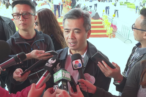 Secretário para a Segurança, Wong Sio Chak, fala à comunicação social, à margem duma ocasião pública.